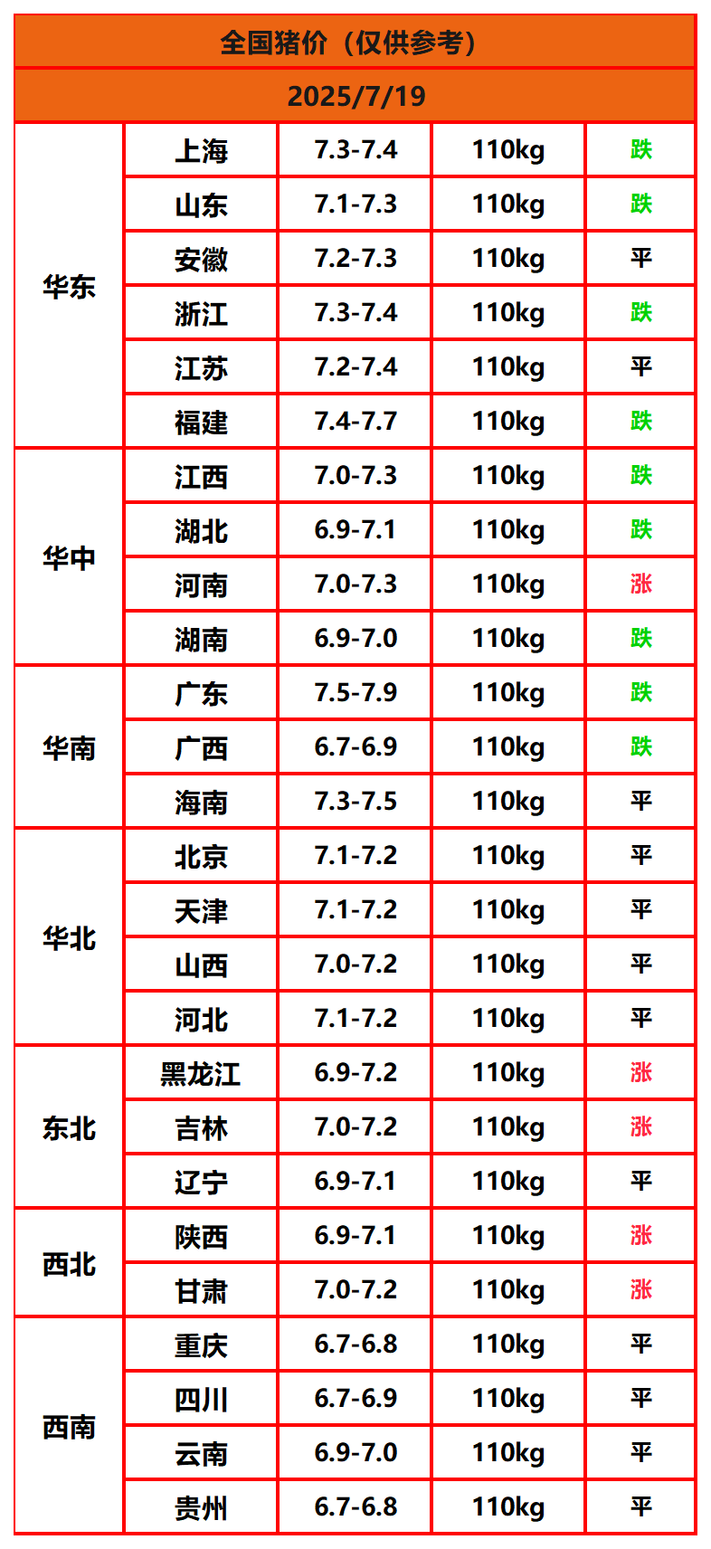 今日猪价 | 2025年7月19日全国猪价行情一览表!