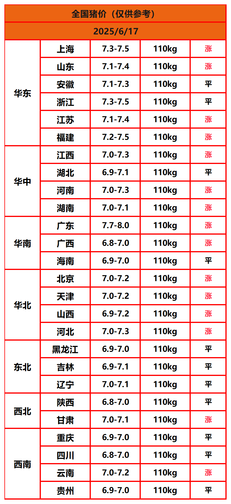 2025年9月28日猪价,今日全国猪价行情走势:8涨8平10跌。免责声明:部分资料来源于网络收集,以供给大家学习、交流为... 【详情+】